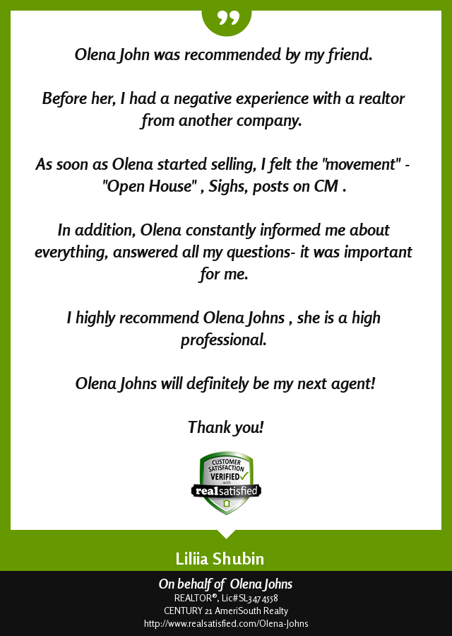 "OLENA JOHNS IS THE BEST REALTOR I KNOW"